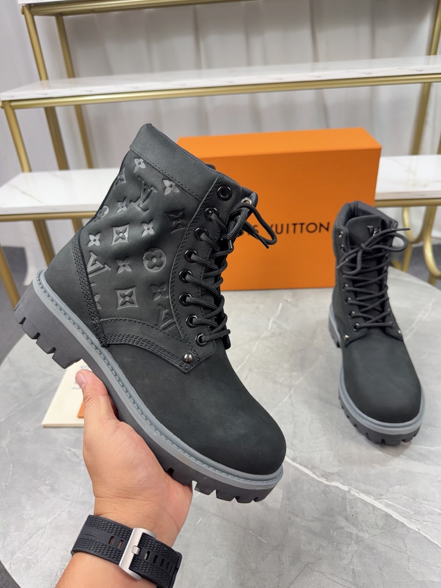 Louis Vuitton情侶靴 2025專櫃同步 LV路易威登時尚爆款靴鞋 原版定製頭層牛皮鞋面 定製羊皮內裏 原版橡膠耐磨大底 底厚3.5cm 碼數-35-46 DD1202950