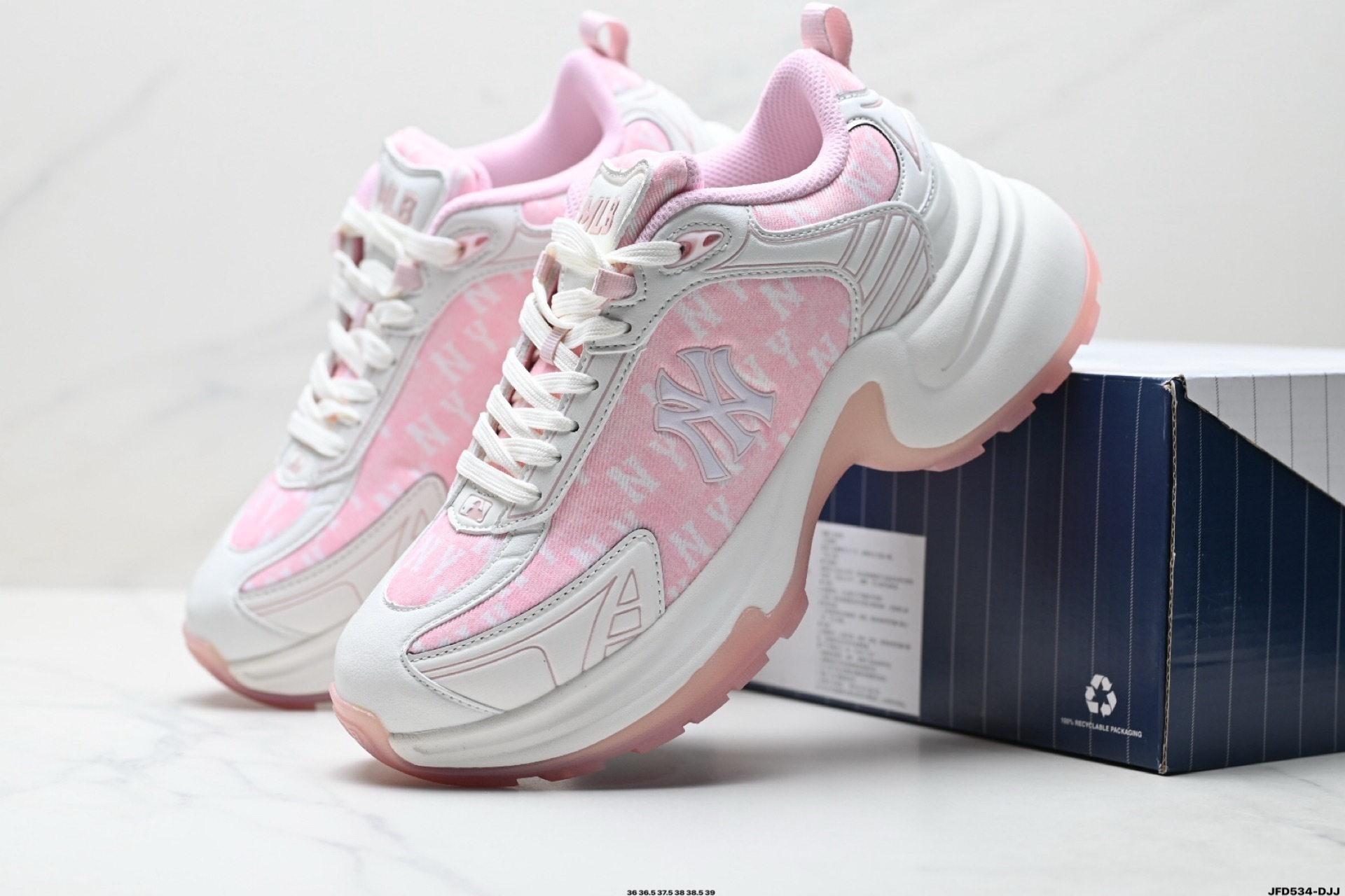 MLB女鞋 洋基隊時尚休閑運動老爹鞋 專櫃同步 鞋面採用頭層牛皮 橡膠防滑大底 帶半碼 36-39 K81801650