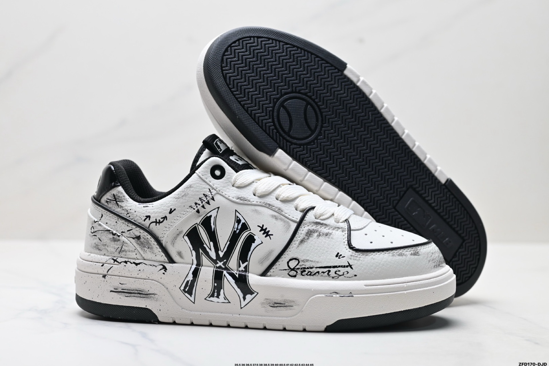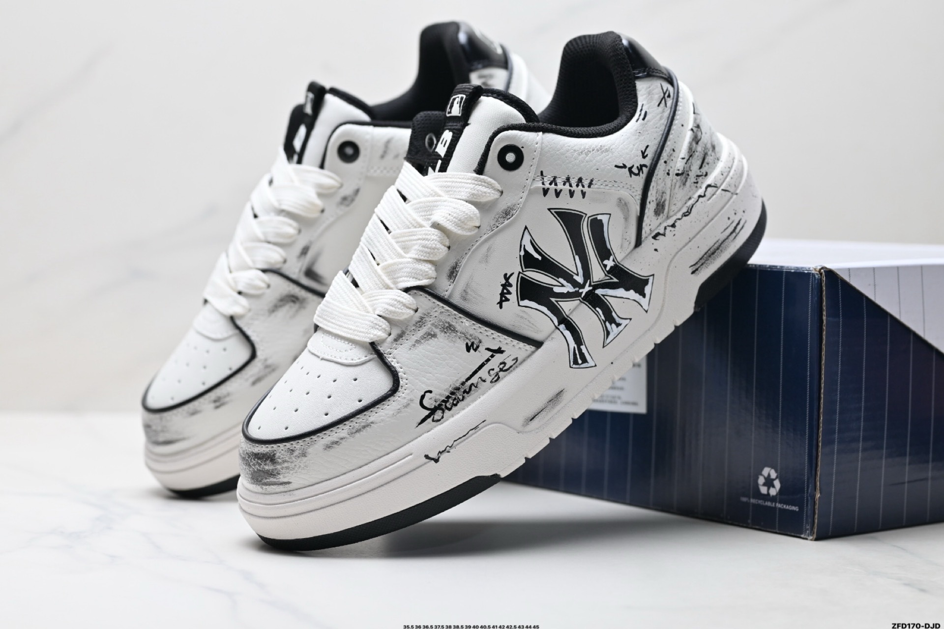 MLB情侶鞋 洋基隊時尚休閑運動板鞋 專櫃同步 鞋面採用頭層牛皮 橡膠防滑大底 帶半碼 35.5-45 K81802550